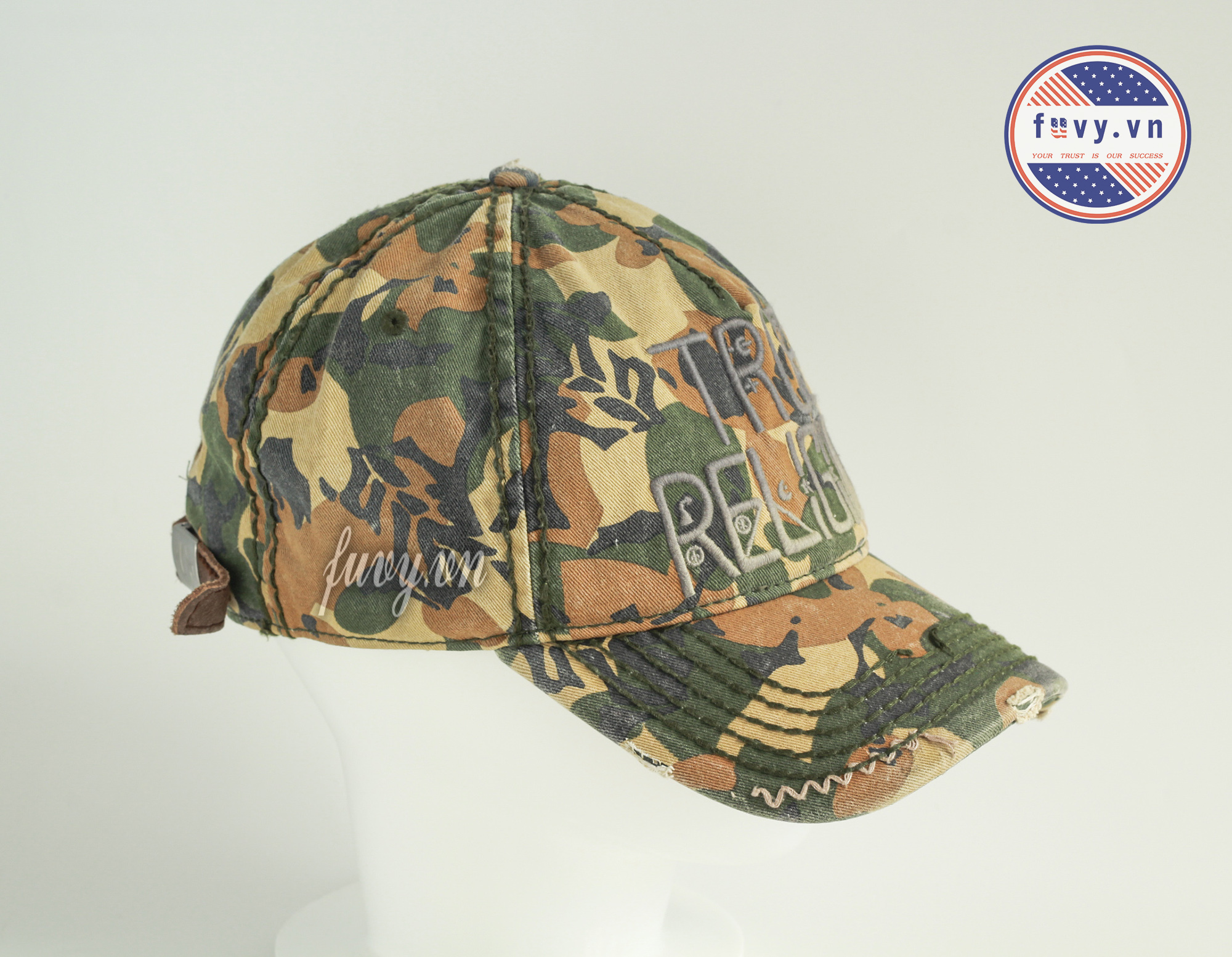 - Nón True Religion cổ phối màu rằn ri rất độc, hãng đã ngưng sản xuất từ lâu. Chất liệu cotton dầy dặn, đường chỉ dập tinh tế. Nón có quai da tăng chỉnh, lót trán da, lòng sâu đội rất thoải mái. Fuvy.vn shop nón Ông Địa chính hãng giá tốt TPHCM.